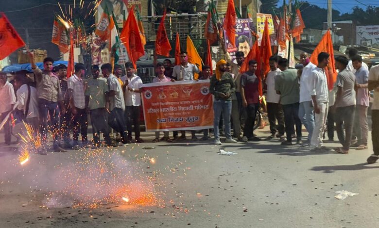 एबीवीपी समर्थित प्रत्याशियों की जीत पर भव्य विजय जुलूस आयोजित