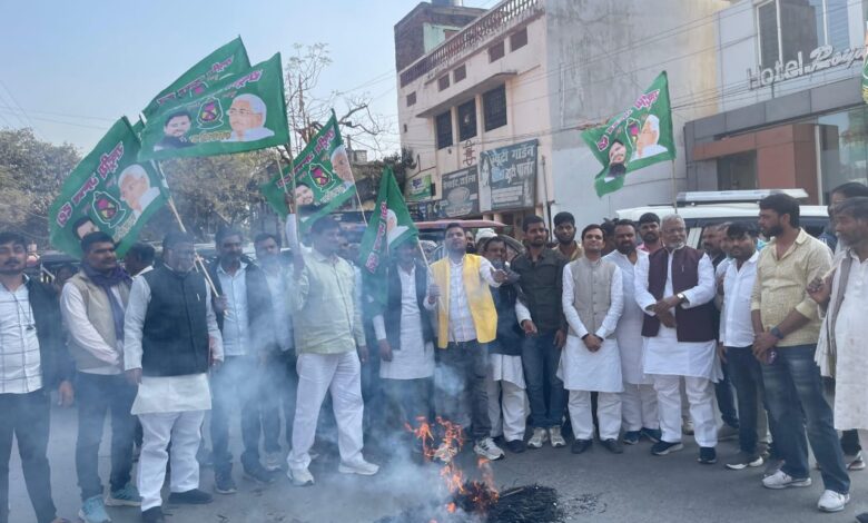 कथित किसान विरोधी ट्रेड डील के खिलाफ अंबेडकर चौक पर पुतला दहन