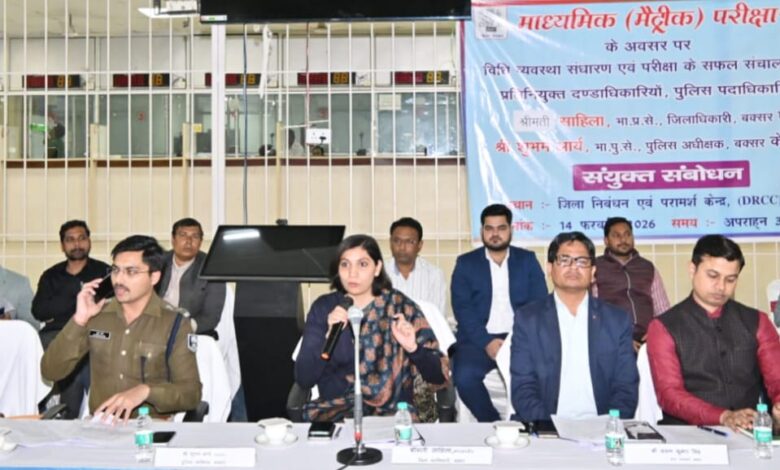 बक्सर। वार्षिक माध्यमिक (सैद्धान्तिक) परीक्षा 2026 के स्वच्छ, शांतिपूर्ण एवं कदाचारमुक्त संचालन को लेकर 14 फरवरी को जिला निबंधन एवं परामर्श केंद्र, बक्सर में संयुक्त ब्रीफिंग आयोजित की गई। बैठक की अध्यक्षता जिला पदाधिकारी साहिला एवं पुलिस अधीक्षक शुभम आर्य ने की। परीक्षा 17 फरवरी से 25 फरवरी 2026 तक दो पालियों में आयोजित होगी। प्रथम पाली सुबह 9ः30 से 12ः45 बजे तथा द्वितीय पाली 2ः00 से 5ः15 बजे तक चलेगी। जिले में कुल 25,489 परीक्षार्थी शामिल होंगे। बक्सर और डुमरांव अनुमंडल में निर्धारित केंद्रों पर परीक्षा होगी। परीक्षा के सफल संचालन हेतु 61 स्टैटिक दंडाधिकारी, 17 प्रश्न पत्र वितरण गश्ती दल दंडाधिकारी, 6 जोनल एवं 4 सुपर जोनल दंडाधिकारी की प्रतिनियुक्ति की गई है। परीक्षा केंद्र पर जूता-मोजा, मोबाइल, स्मार्ट वॉच, ब्लूटूथ सहित सभी इलेक्ट्रॉनिक उपकरण प्रतिबंधित रहेंगे। प्रवेश परीक्षा शुरू होने के आधा घंटा पूर्व बंद कर दिया जाएगा तथा दो स्तर पर तलाशी होगी। जिला नियंत्रण कक्ष समाहरणालय परिसर में कार्यरत रहेगा। प्रशासन ने विधि-व्यवस्था, निर्बाध बिजली, यातायात, स्वास्थ्य एवं अग्निशमन व्यवस्था सुनिश्चित करने के निर्देश दिए हैं।