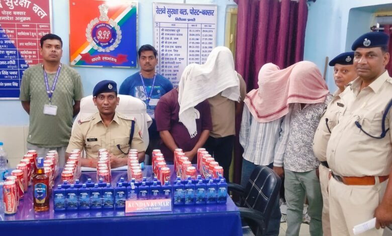 आरपीएफ की बड़ी कार्रवाई, ट्रेन चेकिंग में शराब की खेप जब्त, चार तस्कर गिरफ्तार