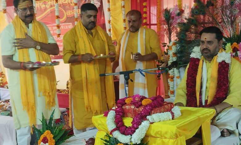 भागवत कथा में धूमधाम से मनाया गया श्रीकृष्ण जन्मोत्सव