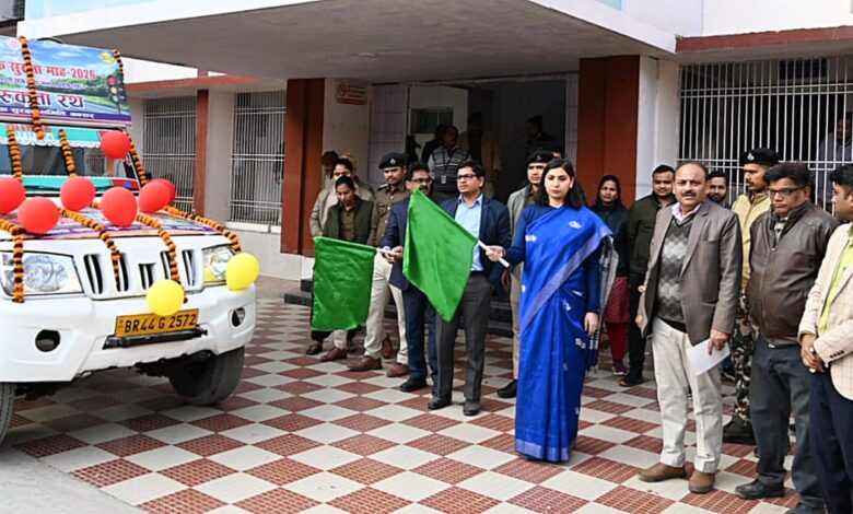 सड़क सुरक्षा प्रचार वाहन को जिला पदाधिकारी ने हरी झंडी दिखाकर किया रवाना