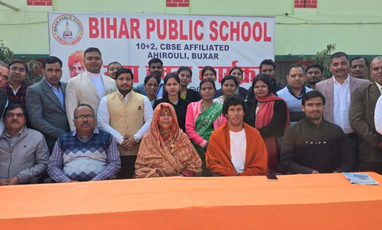बक्सर। बिहार पब्लिक स्कूल, बक्सर के तत्वावधान में 12 जनवरी 2026 (सोमवार) को स्वामी विवेकानंद जयंती एवं राष्ट्रीय युवा दिवस के अवसर पर विद्यालय परिसर में “युवा चेतना कार्यक्रम” का आयोजन किया गया। कार्यक्रम का शुभारंभ पूर्वाह्न 11 बजे हुआ, जिसमें मुख्य अतिथि के रूप में विश्व की प्रथम महिला पर्वतारोही एवं पद्मश्री सम्मानित संतोष यादव उपस्थित रहीं। उनके आगमन पर विद्यालय के बैंड दल द्वारा भव्य स्वागत किया गया। इस अवसर पर विद्यार्थियों ने संतोष यादव के जीवन, संघर्ष और उपलब्धियों पर आधारित प्रेरणादायी नाटक प्रस्तुत कर युवाओं को अनुशासन, साहस और आत्मविश्वास का संदेश दिया। स्वामी विवेकानंद जयंती के उपलक्ष्य में संतोष यादव ने विद्यालय परिसर में पौधारोपण कर पर्यावरण संरक्षण का संदेश दिया। सभा को संबोधित करते हुए संतोष यादव ने कहा कि सपनों को साकार करने के लिए निरंतर परिश्रम, अनुशासन और संकल्प आवश्यक है। उन्होंने युवाओं से समय के महत्व को समझने, असफलता से सीख लेने और लक्ष्य के प्रति सजग रहने का आह्वान किया। इस दौरान रुद्रा गुरुकुल के संस्थापक अविराम सुंदर को उनके शैक्षिक एवं सामाजिक योगदान के लिए सम्मानित किया गया। कार्यक्रम में विभिन्न विद्यालयों, शैक्षणिक संस्थानों, सामाजिक संगठनों के प्रतिनिधि, अभिभावक एवं शिक्षक उपस्थित रहे। विद्यालय के निदेशक राकेश ओझा ने कार्यक्रम की सराहना की, जबकि प्राचार्य विकास ओझा ने धन्यवाद ज्ञापन किया।